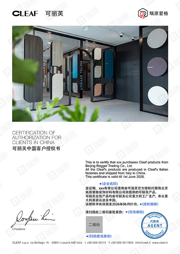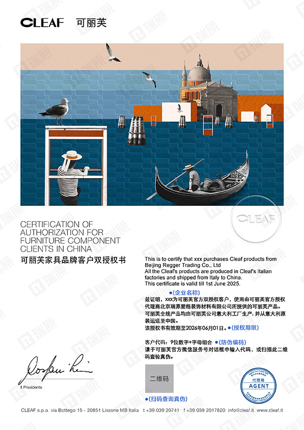可丽芙授权证书模板:证书信息与我司官网授权信息准确对应,则为我司官方授权,可微信扫证书左下角二维码查验。